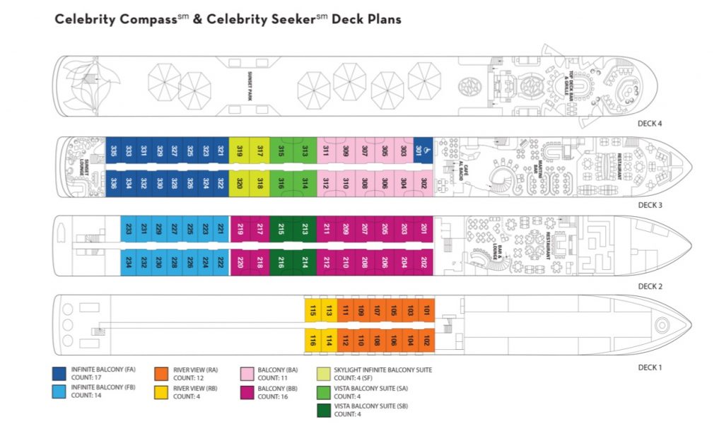 Celebrity Compass and Celebrity Seeker offer guests the chance to dine floating above the river on the Magic Edge – the first-ever cantilevered dining pods – while enjoying regional, destination-driven culinary offerings. Transformative shade structures, furniture and a top-deck bar and grille, maximize guests’ time on deck while offering zones for every mood, whether it be socializing or disconnecting, in a space designed for year-round comfort. Plus, an infinity-edge plunge pool invites guests to cool off while taking in the sights. These flexible public spaces ensure guests enjoy more of their time outside at destinations, and on the journey in between.