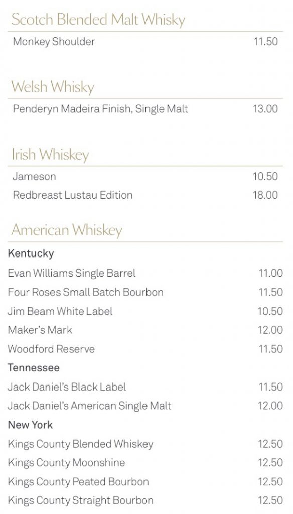 It is worth keeping in mind, not all bars stock the whole menu, and some bars have exclusive menus items.