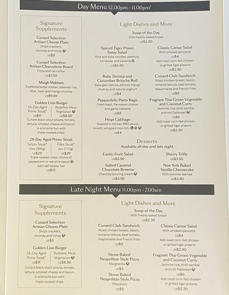 Overall, the food on our 2026 Queen Mary 2 cruise was fantastic, now take a look at the menus below and be sure to watch our vlogs to see what we went for and what we thought!
