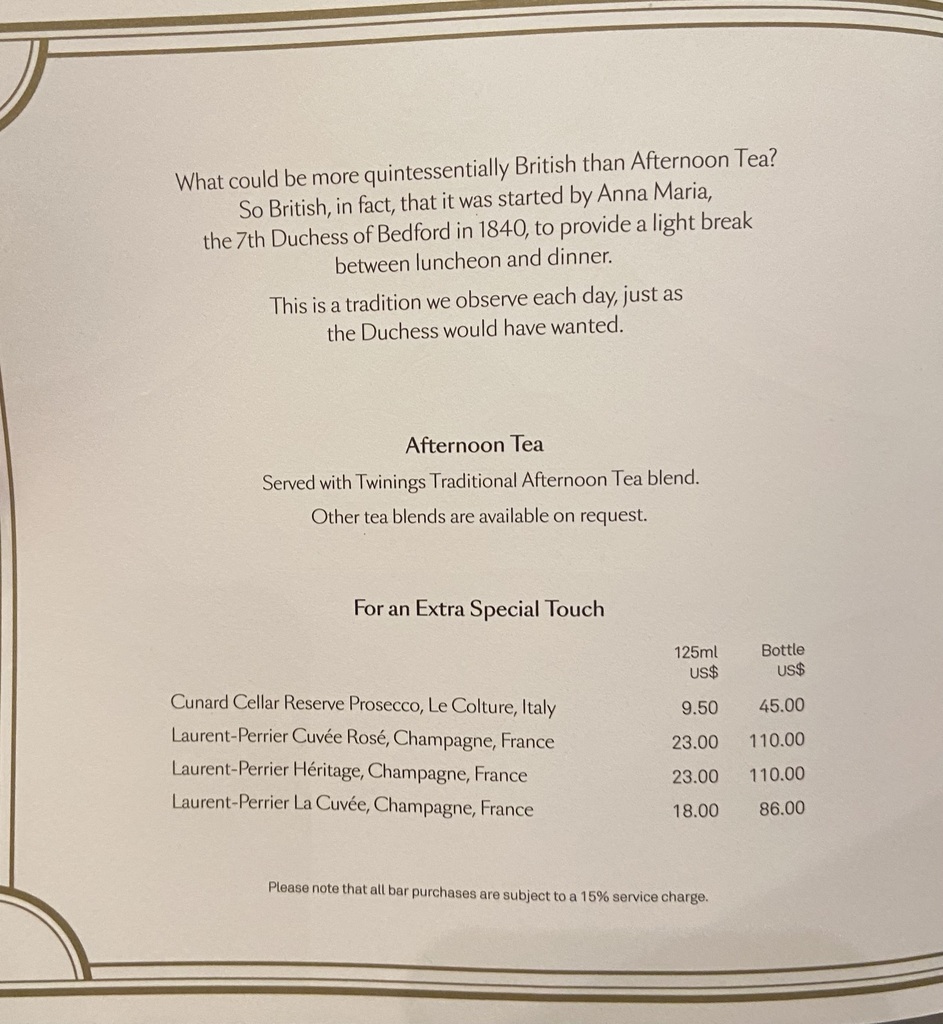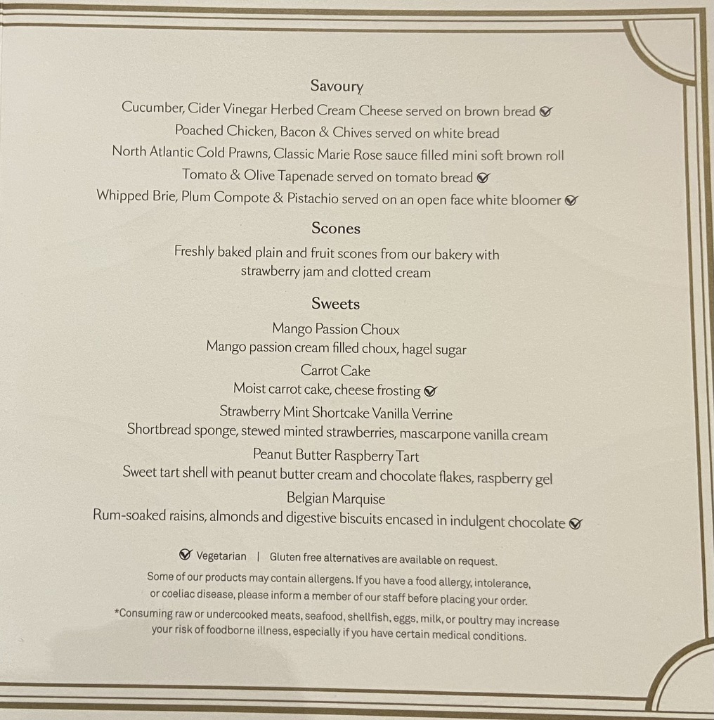 A highlight was Afternoon Tea in the Queens Room. With white‑gloved service, delicate sandwiches, warm scones, and perfectly brewed tea, it felt like a small ceremony in its own right. Simple, elegant, and unmistakably Cunard.