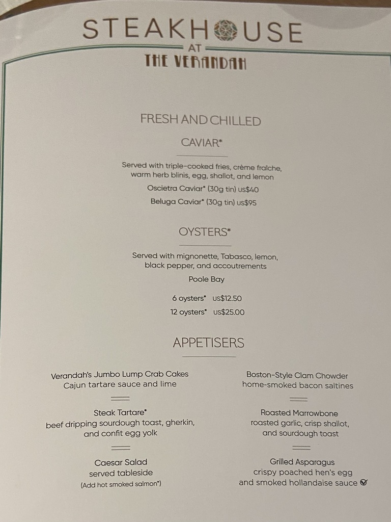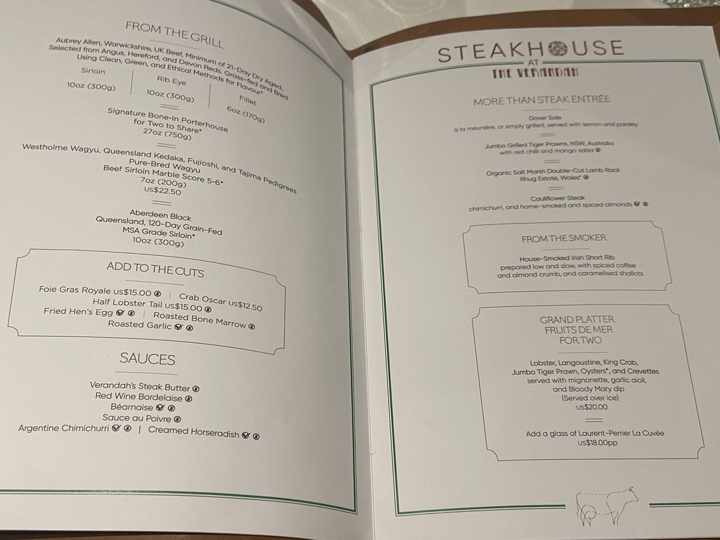 Sir Samuel’s, meanwhile, was a real highlight for anyone who enjoys a proper steakhouse experience. The menu focused on quality cuts cooked with precision, alongside rich sides and classic sauces. If you appreciate a well‑cooked steak in an elegant setting, Sir Samuel’s is absolutely worth booking.