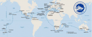 Sailing north along Africa’s western coast, the journey continues into the Mediterranean with visits to Barcelona, Sicily, and the Adriatic Sea, including Dubrovnik, as well as Casablanca, before crossing the Atlantic Ocean back to North America.